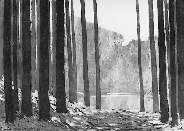 Bühnenbildentwurf Parsifal „Der heilige Waldsee“, Otto Altenkirch, 1913, Reproduktion (Verbleib des Originals unbekannt), © Otto Altenkirch-Archiv Petrasch