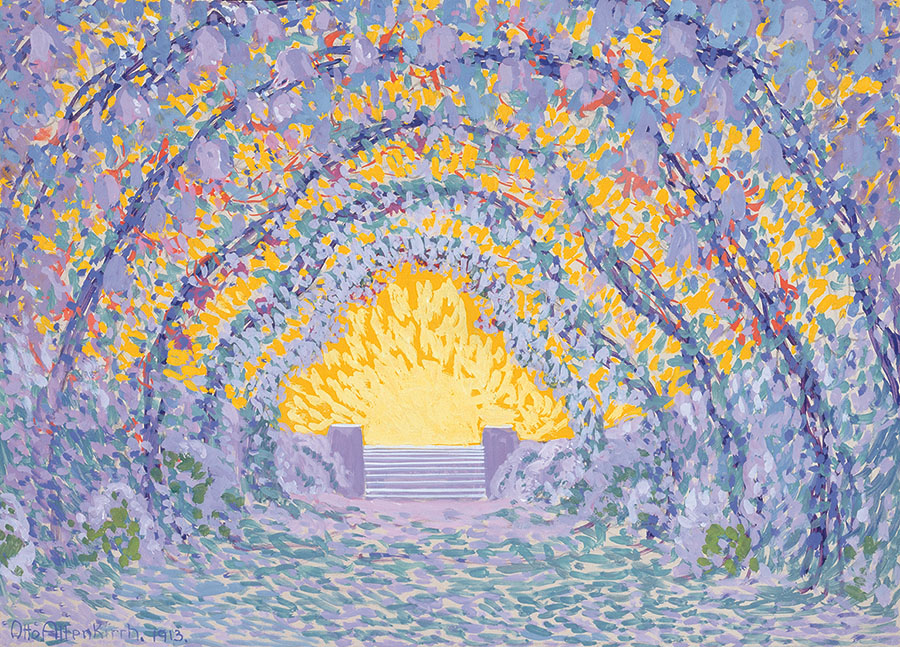 Bühnenbildentwurf Parsifal „Klingsors Zaubergarten“, Otto Altenkirch, 1913, Gouache/Papier, 45 x 63, Privatbesitz