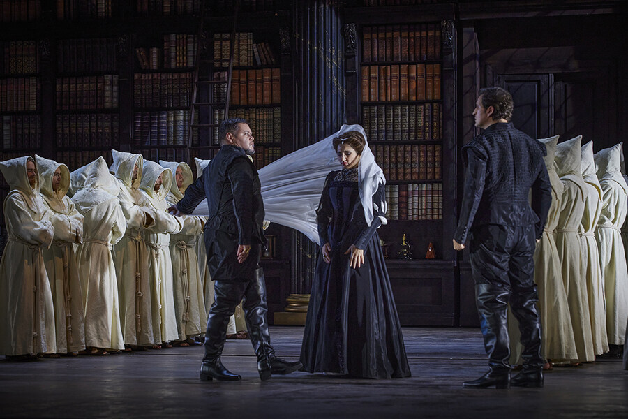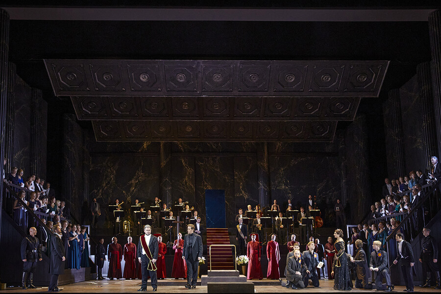 Eisige Kälte herrscht am spanischen Königshof: Der Thronfolger Don Carlo verliert seine Braut Elisabetta aus politischen Gründen an seinen Vater, den spanischen König. Auch seine politischen Ambitionen kann der Kronprinz nicht verwirklichen. Der König wiederum ist machtlos gegen den glaubensstrengen Großinquisitor. Einzig Carlos Freund Rodrigo kann scheinbar die Grenzen von politischen und privaten Zwängen überwinden. Doch sein kühner Traum von der Freiheit führt in eine Katastrophe. An nahezu allen Figuren seiner 1867 uraufgeführten Oper spielt Giuseppe Verdi sein großes Thema, die Unvereinbarkeit von Politik und privatem Glück, durch und entfaltet so ein bedrückend modernes Gesellschaftspanorama. In Kooperation mit den Osterfestspielen Salzburg zeigt die Semperoper Don Carlo in der vieraktigen italienischen Fassung von 1884, ergänzt durch die vom Komponisten Manfred Trojahn neu komponierte instrumentale Einleitung, die die Vorgeschichte des Dramas erzählt.