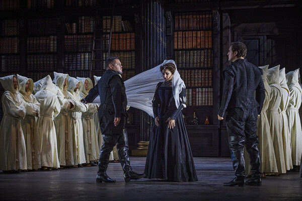 Eisige Kälte herrscht am spanischen Königshof: Der Thronfolger Don Carlo verliert seine Braut Elisabetta aus politischen Gründen an seinen Vater, den spanischen König. Auch seine politischen Ambitionen kann der Kronprinz nicht verwirklichen. Der König wiederum ist machtlos gegen den glaubensstrengen Großinquisitor. Einzig Carlos Freund Rodrigo kann scheinbar die Grenzen von politischen und privaten Zwängen überwinden. Doch sein kühner Traum von der Freiheit führt in eine Katastrophe. An nahezu allen Figuren seiner 1867 uraufgeführten Oper spielt Giuseppe Verdi sein großes Thema, die Unvereinbarkeit von Politik und privatem Glück, durch und entfaltet so ein bedrückend modernes Gesellschaftspanorama.