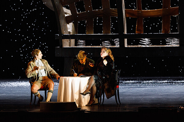 Johann Strauss’ Die Fledermaus aus dem Jahr 1874 ist ein Glanzstück der Wiener Operette: Um sich an seinem Freund Eisenstein zu rächen, inszeniert Dr. Falke alias die Fledermaus ein Verwechslungsspiel beim Ball des Grafen Orlofsky. Dort treffen sich ein Marquis und ein Chevalier, eine ungarische Gräfin und angehende Künstlerinnen. Jedoch: niemand ist der, für den er sich ausgibt. Alles ist Maskerade und Schwindel, und so endet die Ballgesellschaft im Gefängnis. Als schließlich alle Masken fallen und die außerehelichen Techtelmechtel ans Licht kommen, zeigt sich die gelungene Rache der Fledermaus. In der Inszenierung von Günter Krämer begeistern seit 2003 sowohl Klassiker wie das Uhren-Duett, der Czárdás oder Adeles „Mein Herr Marquis“ als auch tagespolitische Dialoge das Publikum der Semperoper. Mit sprudelnder Ironie in perlender Champagnerlaune sorgt Die Fledermaus nicht nur zum Jahreswechsel immer wieder für vergnügt-beschwingte Stimmung.