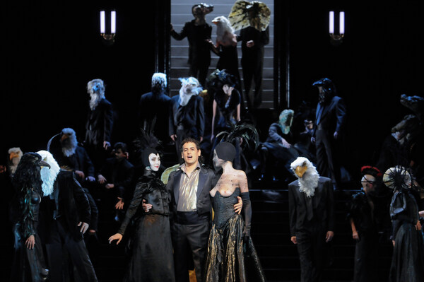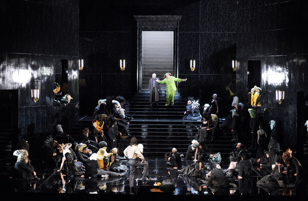 Giftgrün tritt der Narr in Nikolaus Lehnhoffs Inszenierung von Rigoletto, auf und giftig ist der Spott, mit dem er über die Höflinge des Herzogs von Mantua herzieht. Sein Inneres jedoch ist schwarz, immer in Sorge um seine Tochter Gilda, die er eifersüchtig abschirmt, um sie dem Zugriff des Herzogs, eines gefürchteten Frauenhelden, zu entziehen. Als Gilda dennoch Opfer des Herzogs wird, schwört Rigoletto blutige Rache. Doch diese fällt auf ihn selbst zurück … Rigoletto wurde 1851 am Teatro La Fenice mit überwältigendem Erfolg uraufgeführt. Giuseppe Verdi hatte eine Musik geschaffen, die er selbst als „revolutionär“ bezeichnete, und in bisher nie gehörter musikdramatischer Dichte entwickelt sich die zutiefst erschütternde Dramatik dieser vielleicht besten Oper des großen Italieners.