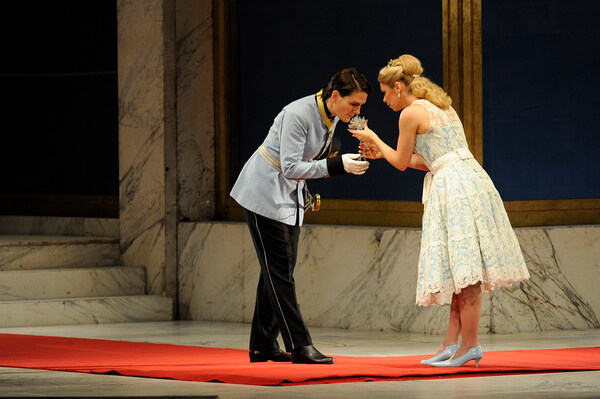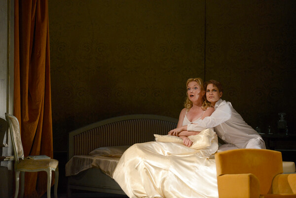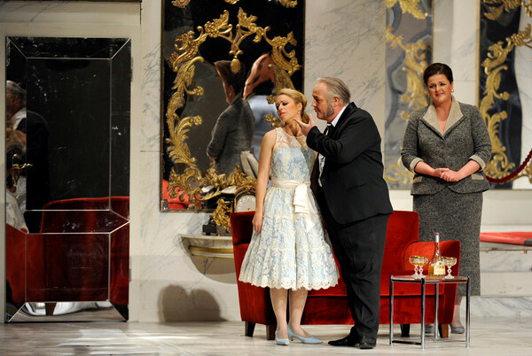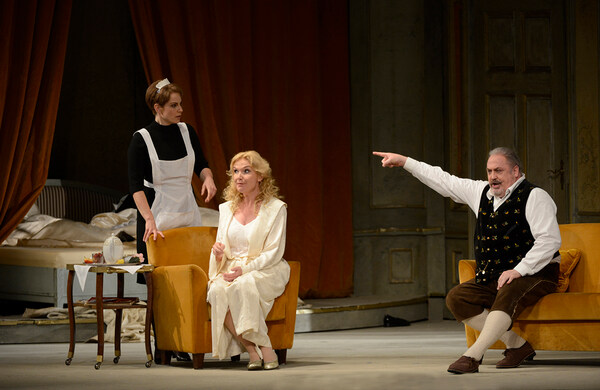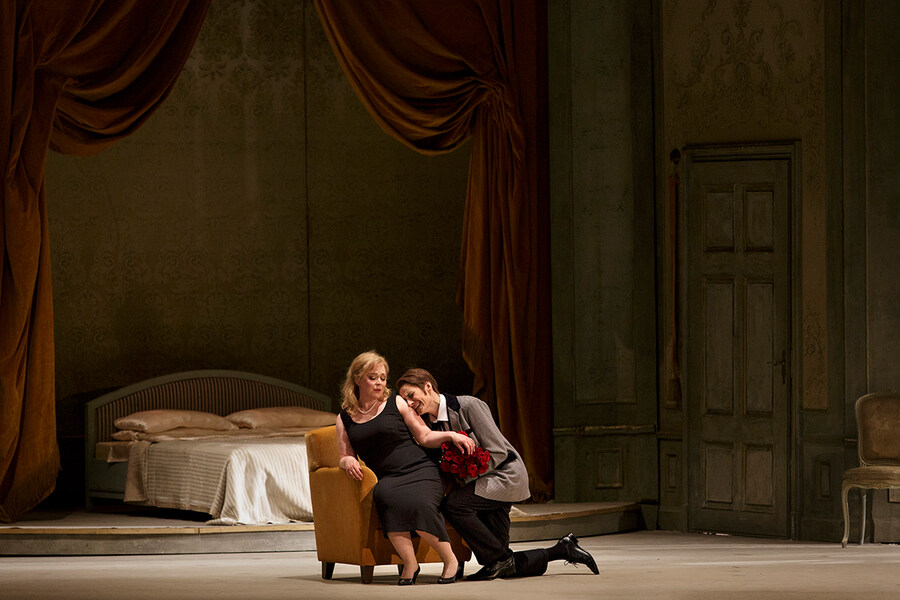 Als Octavian als Brautwerber für den Mitgiftjäger Ochs auf Lerchenau die silberne Rose überbringen soll, geschieht das Unaufhaltsame: Brautwerber und Braut verlieben sich. Mit einer komödiantischen Maskerade schaltet Octavian seinen Auftraggeber aus, und die Feldmarschallin gibt Octavian frei: „Hab mir’s gelobt, ihn lieb zu haben in der richtigen Weis’“ … Uwe Erik Laufenberg hat Der Rosenkavalier als moderne Hommage an die Dresdener Uraufführung inszeniert.