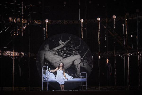 Eine Oper über eine Kurtisane, die an Tuberkulose stirbt und noch dazu einer real existierenden Frau der Pariser Gesellschaft nachempfunden ist, war für die damalige Zeit eine unerhörte Neuerung. Fokussiert auf die Dreiecksbeziehung zwischen Violetta, ihrem Geliebten Alfredo und dessen Vater erschuf Verdi vor allem mit der Figur der Violetta einen Charakter, dessen emotionale Bandbreite das Publikum zwischen lyrisch geführten Belcantostellen und überwältigenden musikdramatischen Ausbrüchen in seinen Bann zieht. Regisseurin Barbora Horáková Joly erzählt La traviata in der schillernden Welt des Varietés des 19. Jahrhunderts.