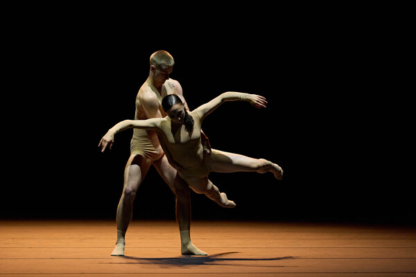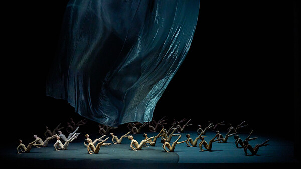 In November, einer Kreation des niederländischen Geschwisterpaares Imre & Marne van Opstal für das Semperoper Ballett, interagieren die Tänzer*innen mit einem riesigen, von der Decke schwebenden Tuch. Körper, Stoff und Licht sind ständig in Bewegung und verschmelzen zu einem poetischen Tanz, zur mal weich fließenden, mal stürmischen Musik von Arvo Pärt.